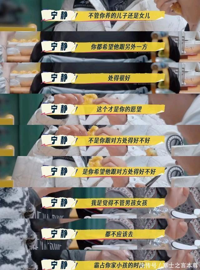 随后宁静的观点想必也让大家十分认同,就是不管生儿子还是女儿,希望他和自己的另一半相处的好才是愿望,作为父母不应该去霸占小孩的时间。
